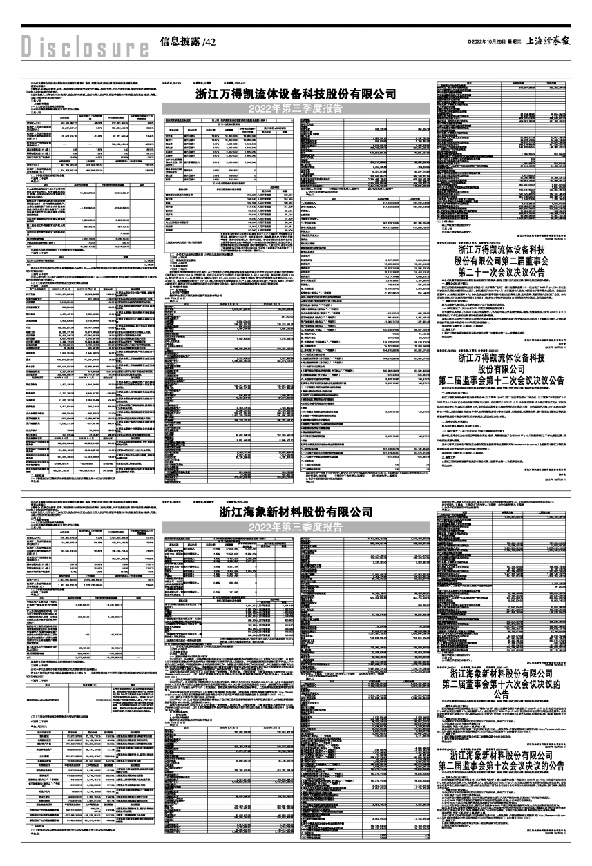 具体内容详见公司在中国证监会指定的信息披露网站巨潮资讯网站(www.cninfo.com.cn)上披露的《浙江万得凯流体设备科技股份有限公司2022年第三季度报告》。