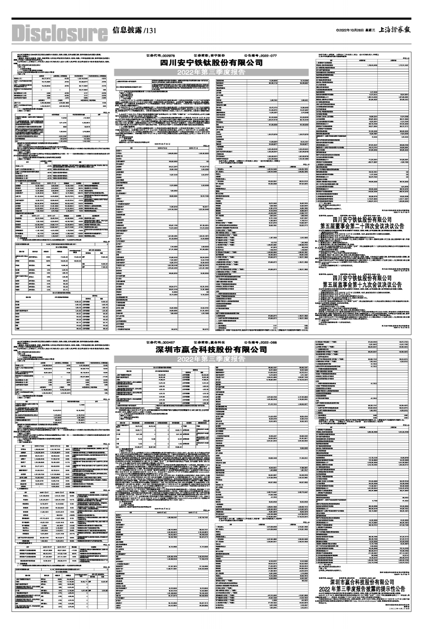 2022年10月24日,深圳市赢合科技股份有限公司(以下简称“公司”)召开了第四届董事会第三十一次会议、第四届监事会第二十一次会议,审议通过了《关于公司2022年第三季度报告的议案》。