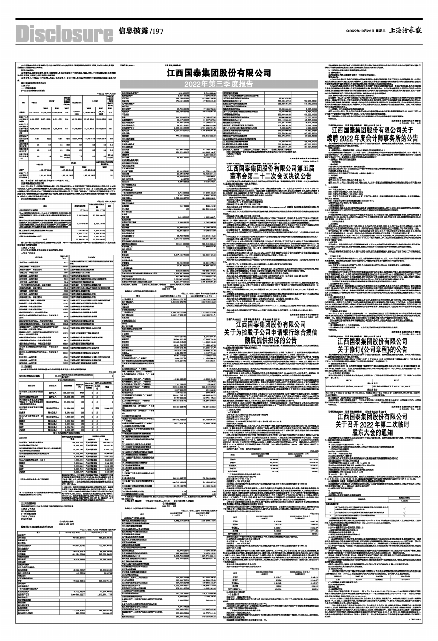 具体内容详见公司于同日在上海证券交易所网站(www.sse.com.cn)披露的《江西国泰集团股份有限公司2022年第三季度报告》。