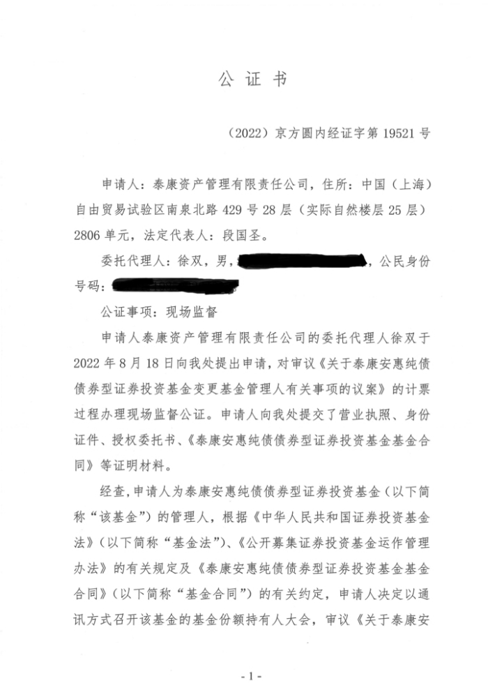 1、《关于以通讯方式召开泰康安惠纯债债券型证券投资基金基金份额持有人大会的公告》