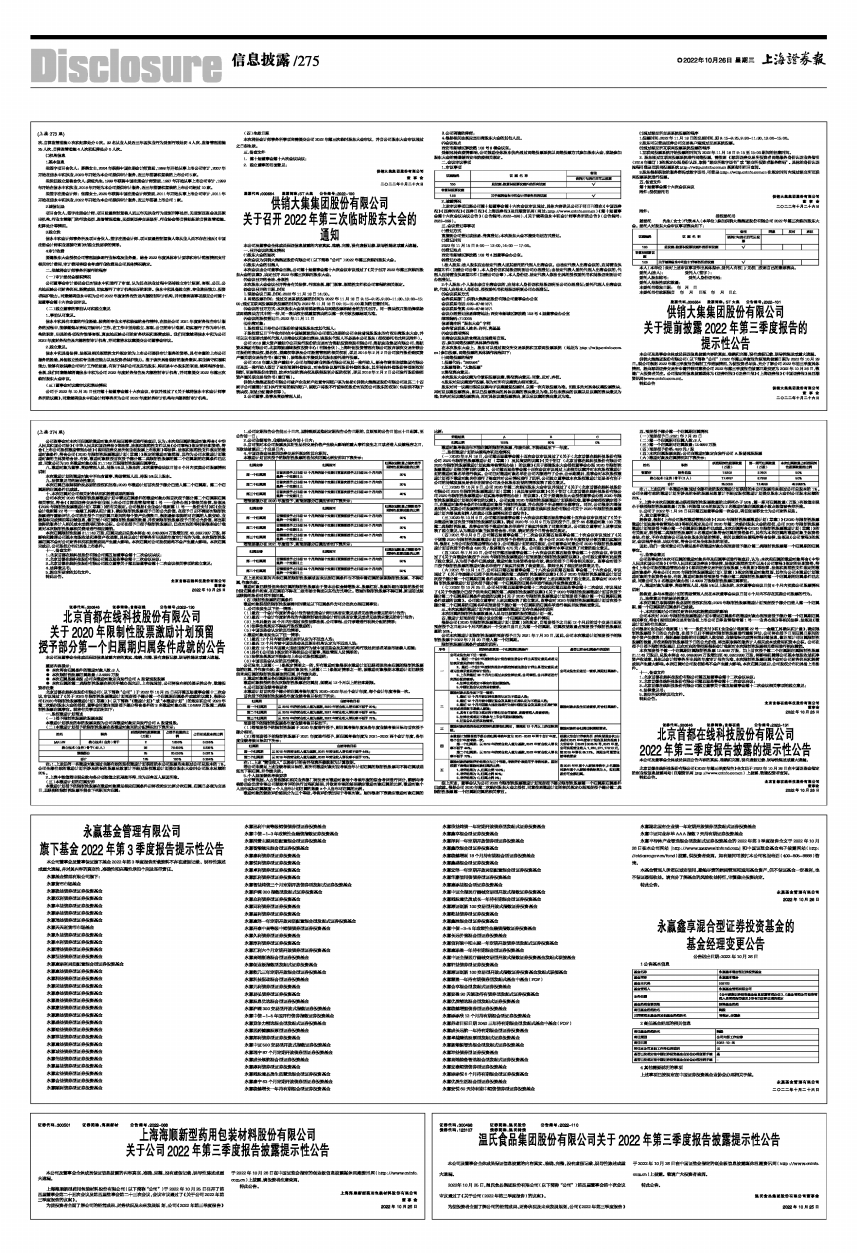 2022年第三季度报告披露的提示性公告