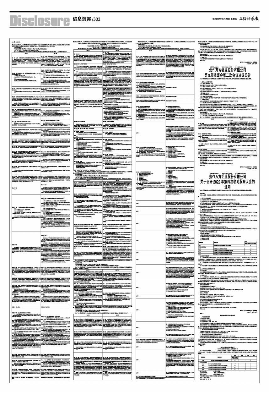 1、上述议案详细内容见2022年10月28日在巨潮资讯网(www.cninfo.com.cn)、《中国证券报》《证券时报》和《上海证券报》上披露的《焦作万方铝业股份有限公司第九届董事会第二次会议决议公告》(公告编号:2022-053)、《焦作万方铝业股份有限公司第九届监事会第二次会议决议公告》(公告编号:2022-054)。