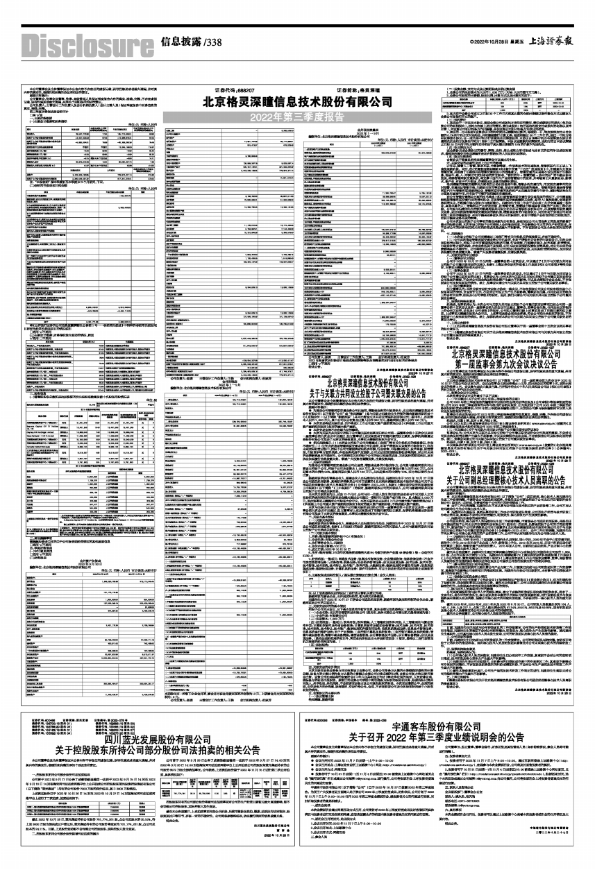 公司2022年第三季度报告详见公司同日在上海证券交易所网站(www.sse.com.cn)披露的《北京格灵深瞳信息技术股份有限公司2022年第三季度报告》。