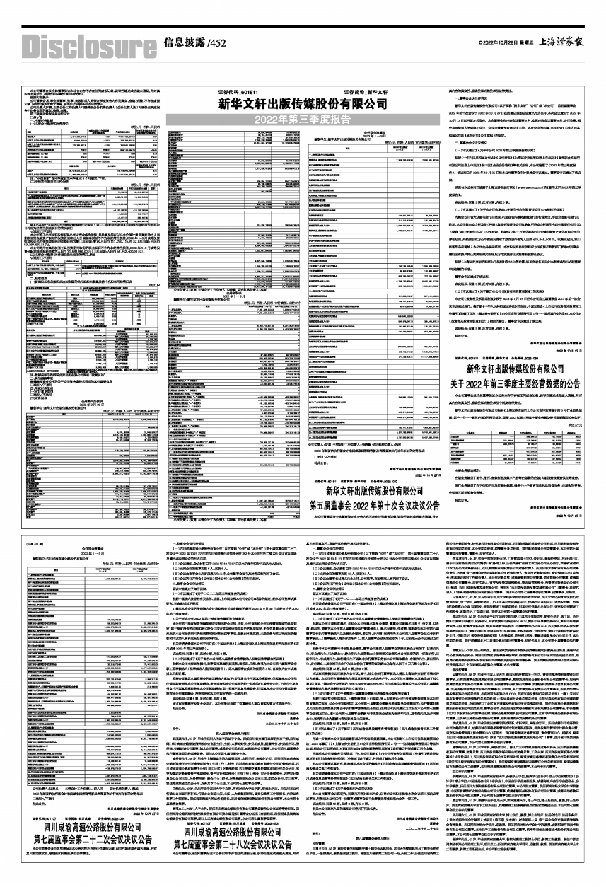 详见与本公告同日披露于上海证券交易所网站(www.sse.com.cn)的《新华文轩2022年第三季度报告》。