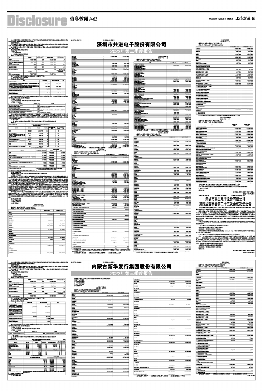 详细内容见同日登载于上海证券交易所网站www.sse.com.cn的《深圳市共进电子股份有限公司2022年第三季度报告》。