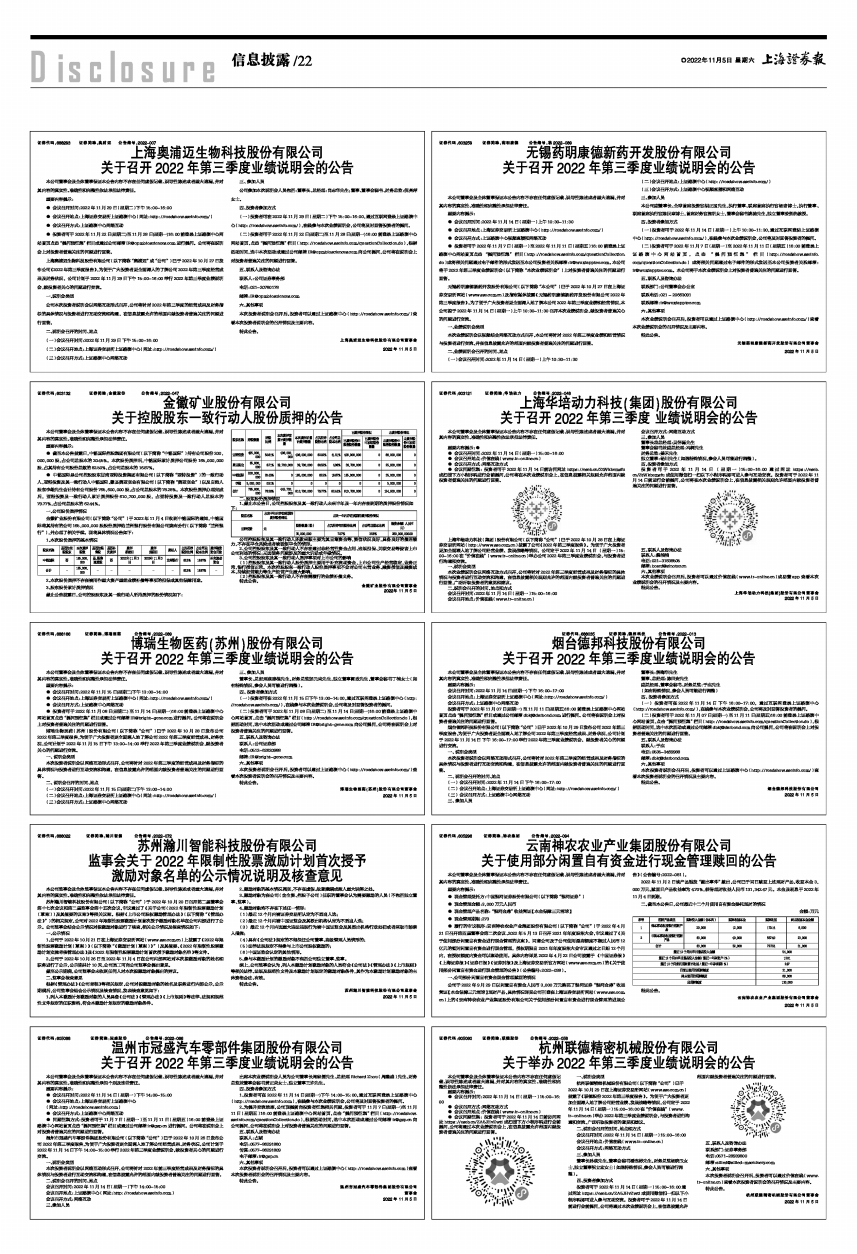 关于召开2022年第三季度 业绩说明会的公告