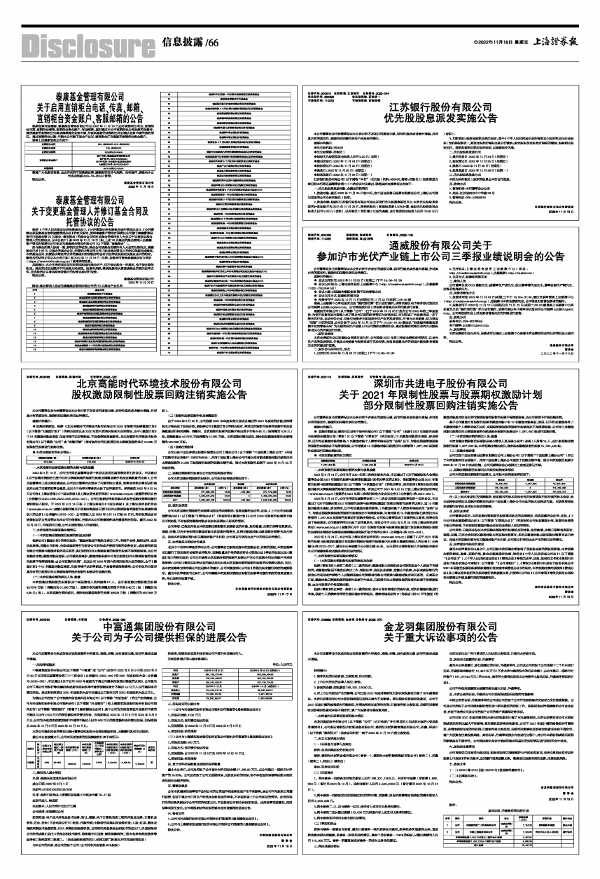 通威股份有限公司(以下简称“公司”)已于2022年10月26日发布公司2022年第三季度报告,为便于投资者更全面深入地了解公司近期的经营情况与财务状况,同时促进广大投资者进一步了解光伏行业,走进光伏企业,向各位投资者全面展现光伏产业的发展情况、价值与未来前景,助力我国“双碳”目标的实现,公司计划于2022年11月23日下午 14:00-16:30参加以“共谋绿色能源变革 携手迈向零碳未来”为主题的光伏产业链上市公司集体业绩说明会,通过视频和网络互动的方式就投资者关心的问题进行交流。