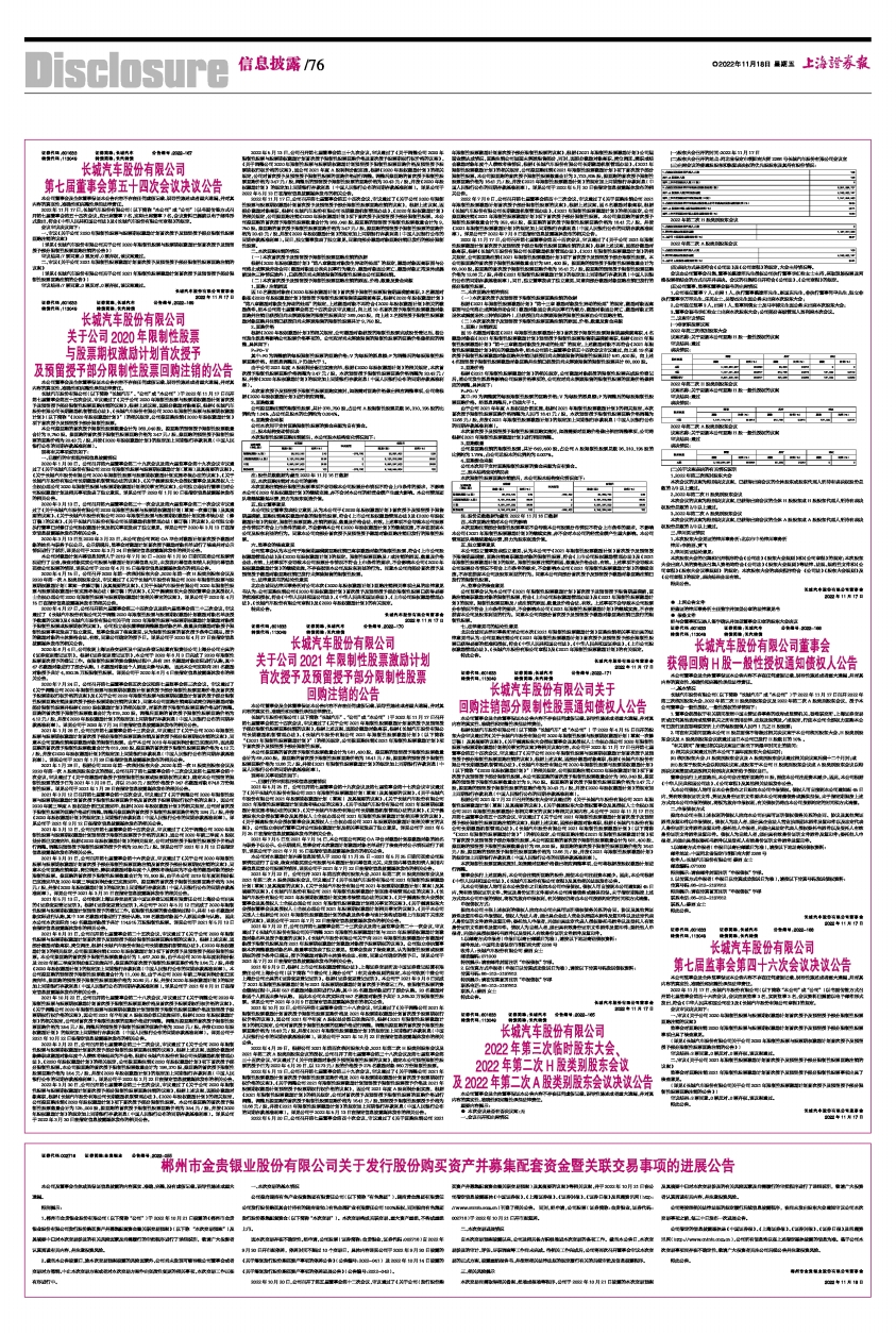 证券代码:601633 证券简称:长城汽车 公告编号:2022-169