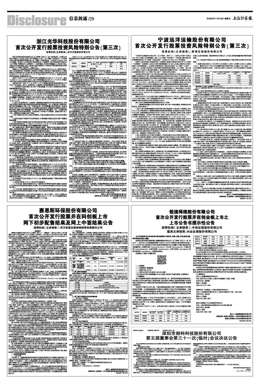 原定于2022年11月4日进行的网上路演推迟至2022年11月25日,原定于2022年11月7日进行的网上、网下申购将推迟至2022年11月28日,并推迟刊登《宁波远洋运输股份有限公司首次公开发行股票发行公告》。