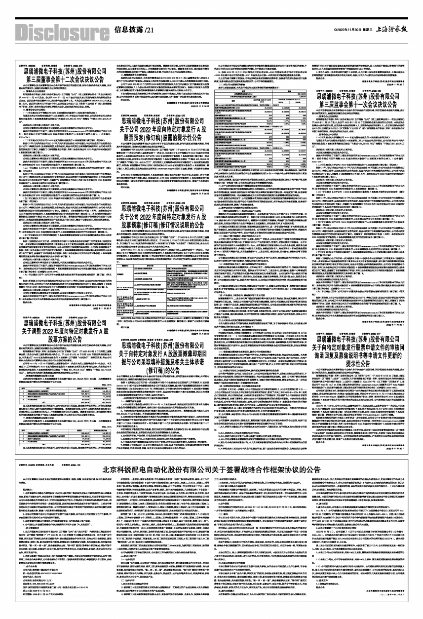 具体内容详见同日刊载于上海证券交易所网站(www.sse.com.cn)的《思瑞浦微电子科技(苏州)股份有限公司关于调整2022年度向特定对象发行A股股票方案的公告》。(公告编号:2022-074)