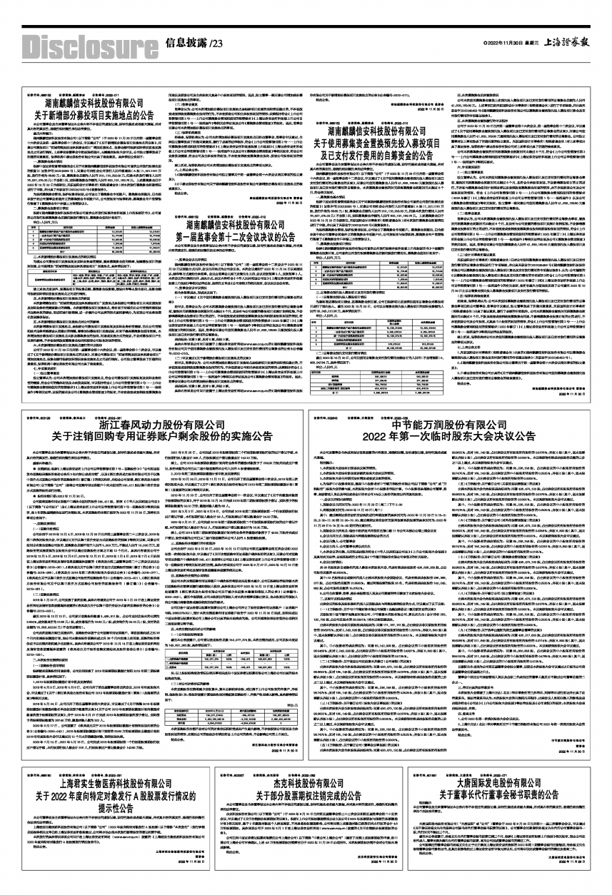 湖南麒麟信安科技股份有限公司(以下简称“公司”)于2022年11月29日召开第一届董事会第十六次会议及第一届监事会第十二次会议,审议通过了《关于新增部分募投项目实施地点的议案》,同意公司募投项目“区域营销及技服体系建设项目”增加实施地点, 投资金额可根据实际情况在各实施地点之间进行调剂。上述事项在董事会审批权限范围内,无需提交股东大会审议。公司独立董事发表了明确的同意意见, 保荐机构中泰证券股份有限公司出具了核查意见。具体情况公告如下: