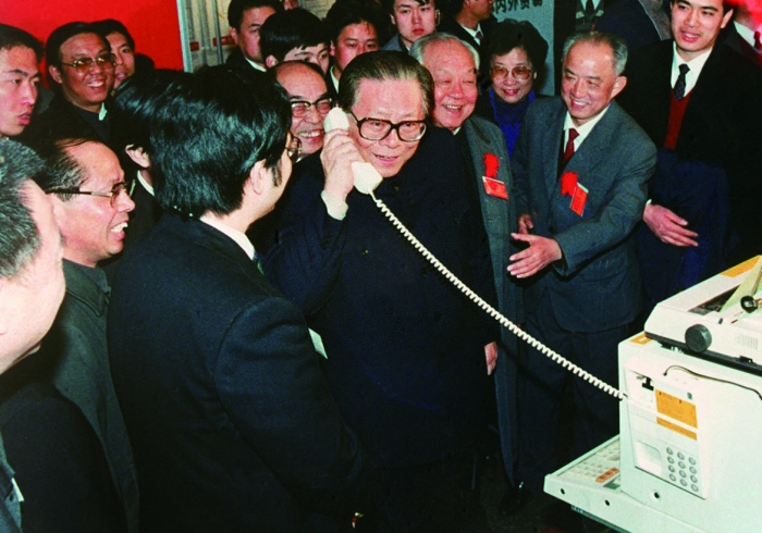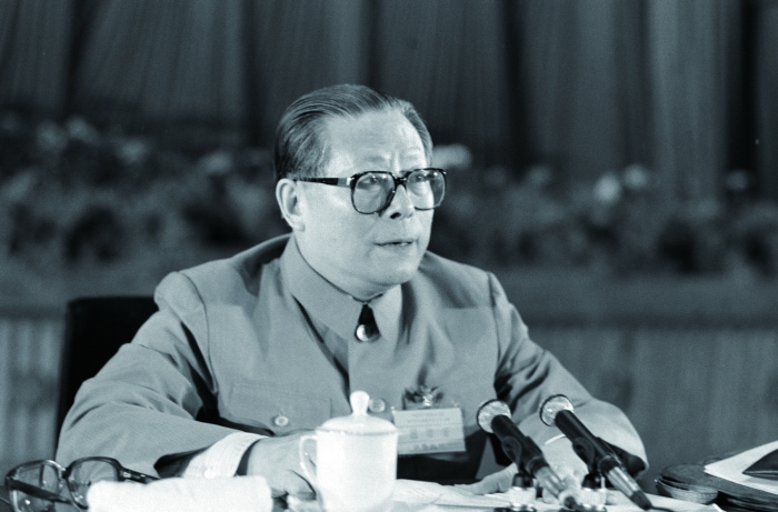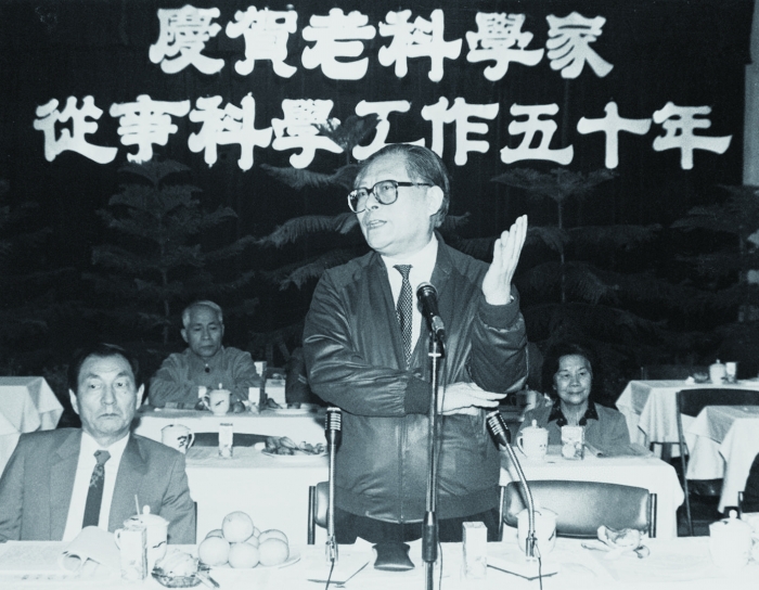 ▲ 1988年10月,江泽民同志在上海庆贺老科学家从事科学工作五十年座谈会上讲话。