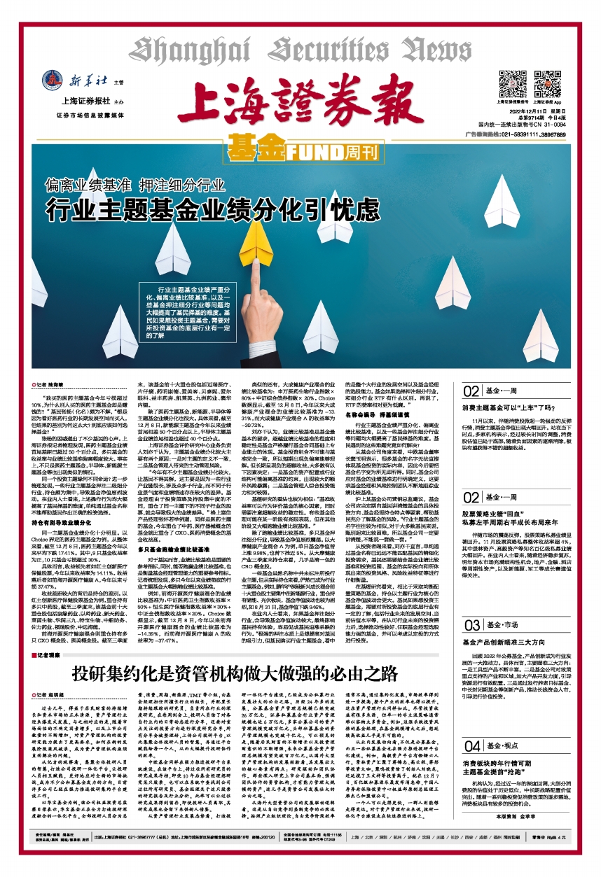 • 偏离业绩基准 押注细分行业 行业主题基金业绩分化引忧虑