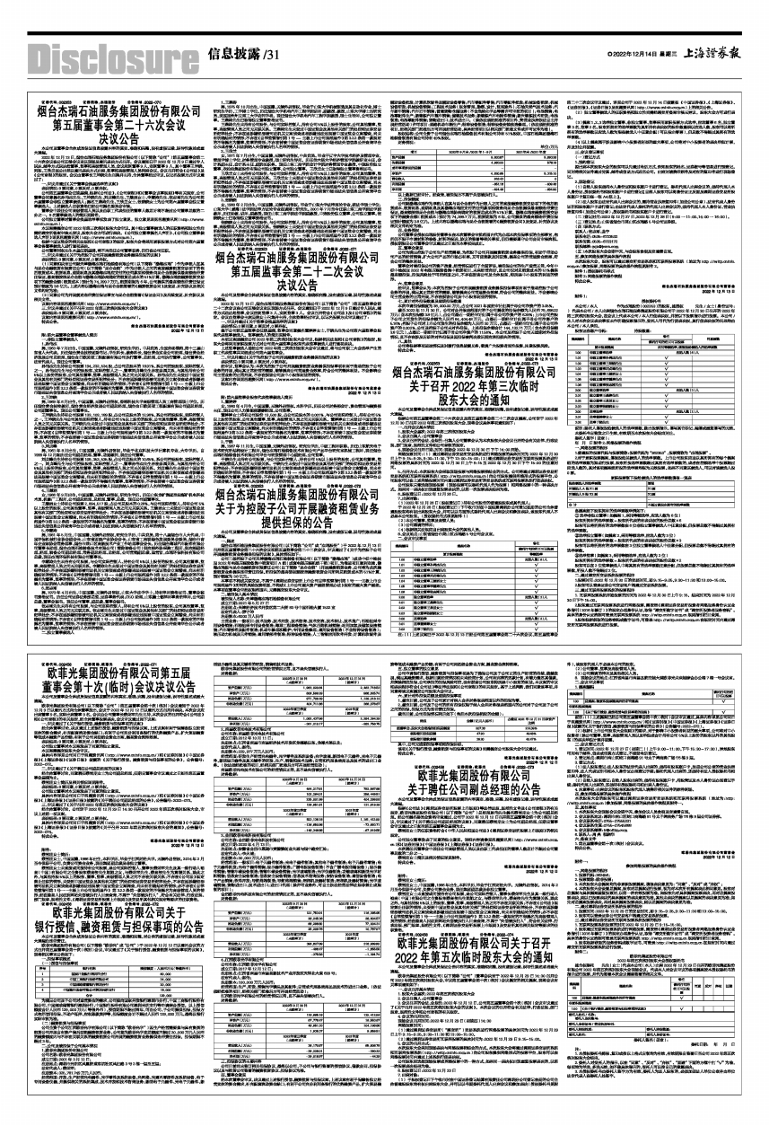 根据公司第五届董事会第二十六次会议及第五届监事会第二十二次会议提案,公司定于2022年12月30日召开2022年第三次临时股东大会,现将会议具体事项通知如下: