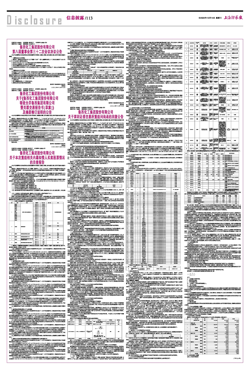 鲁西化工集团股份有限公司(以下简称“鲁西化工”、“上市公司”或“公司”)于2022年12月9日收到深圳证券交易所(以下简称“深交所”)上市公司管理二部下发的《关于对鲁西化工集团股份有限公司的重组问询函》(许可类重组问询函〔2022〕第15号)(以下简称“《问询函》”)。根据《问询函》的相关要求,公司及相关中介机构对有关问题进行了认真分析、研究和核查,并逐项予以落实和回复,现就公司作出的回复说明内容公告如下: