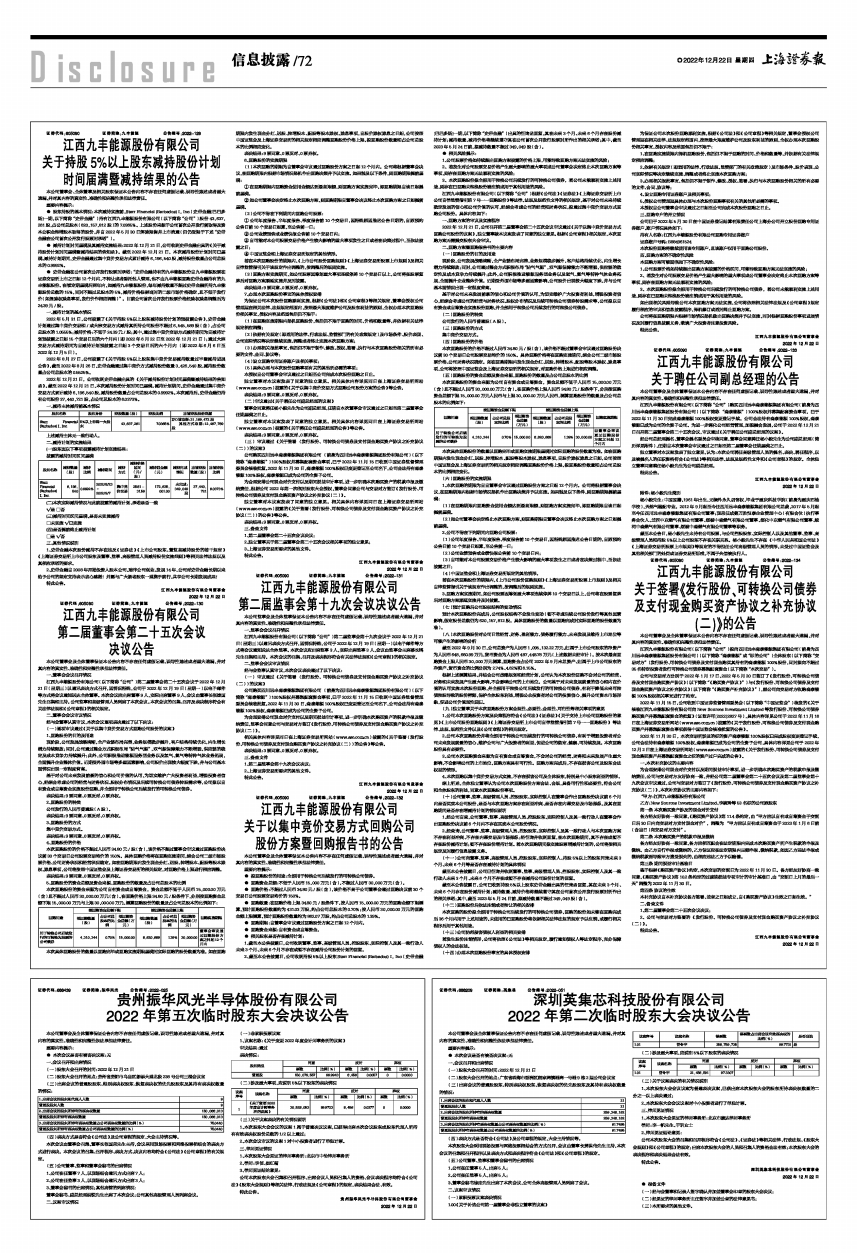 ● 减持计划时间届满及其减持实施结果:2022年12月21日,公司收到史带金融出具的《关于减持股份计划时间届满暨减持结果的告知函》。截至2022年12月21日,本次减持股份计划时间已届满。减持计划期间,史带金融通过集中竞价交易方式累计减持6,196,540股,减持股份数量占公司总股本的0.9992%。