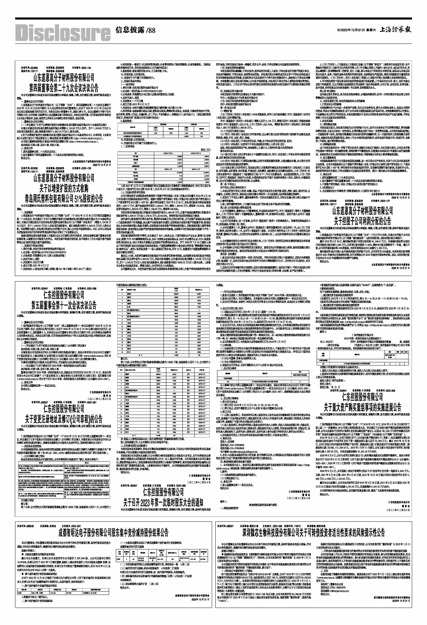 董事会同意召开2023年第一次临时股东大会,现场会议召开时间为2023年1月16日。具体内容详见与本公告同日披露于《中国证券报》《上海证券报》《证券时报》《证券日报》及巨潮资讯网(www.cninfo.com.cn)的《关于召开2023年第一次临时股东大会的通知》(公告编号:2022-068)。