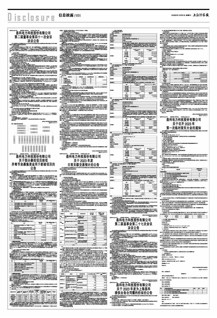 公司全体独立董事对上述事项发表了同意的独立意见。《关于2023年度为上海晶科提供业务合同履约担保的公告》的具体内容刊登于2022年12月31日《上海证券报》、《中国证券报》、《证券时报》、《证券日报》和上海证券交易所网站(www.sse.com.cn)(公告编号:2022-160)。