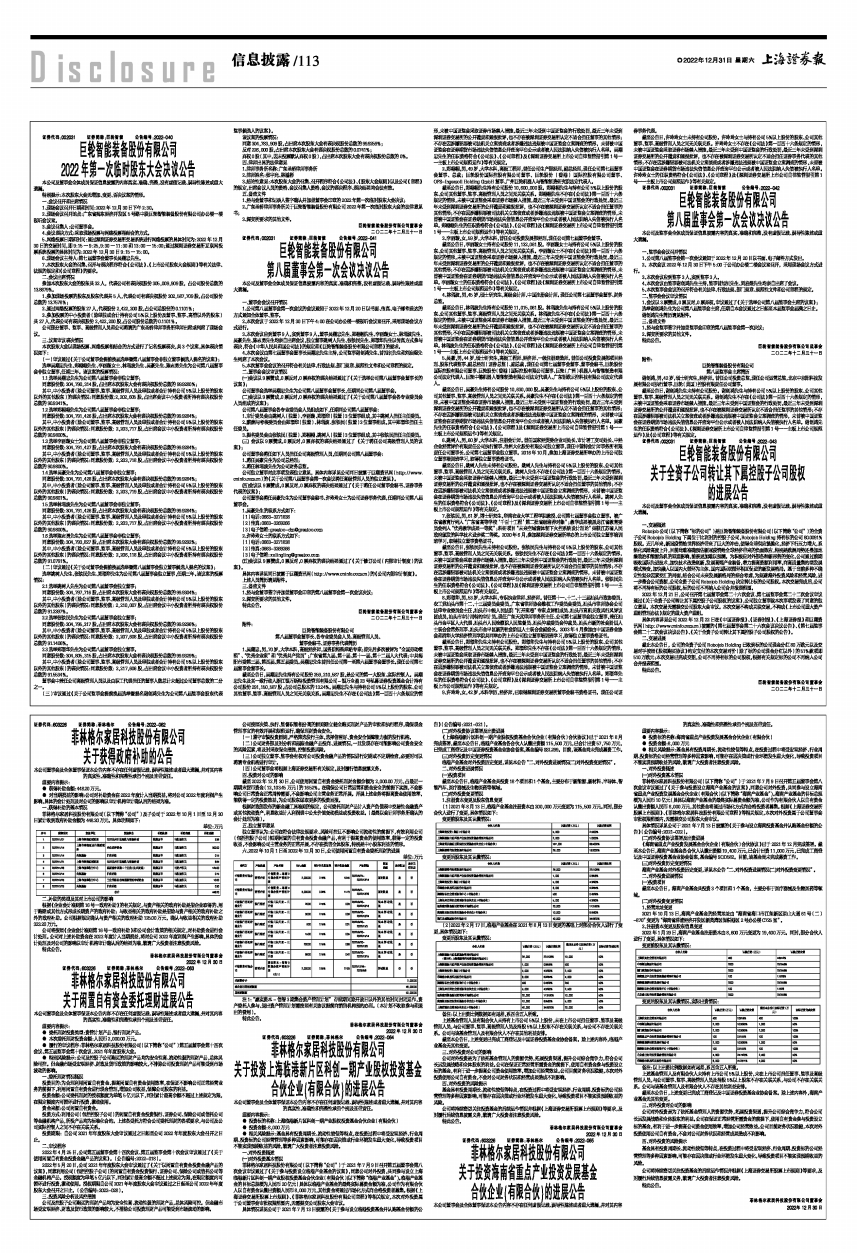 (1)2021年8月13日,临港产业基金注册资本由200,000万元变更为115,500万元。同时,部分合伙人进行了变更,具体情况如下: