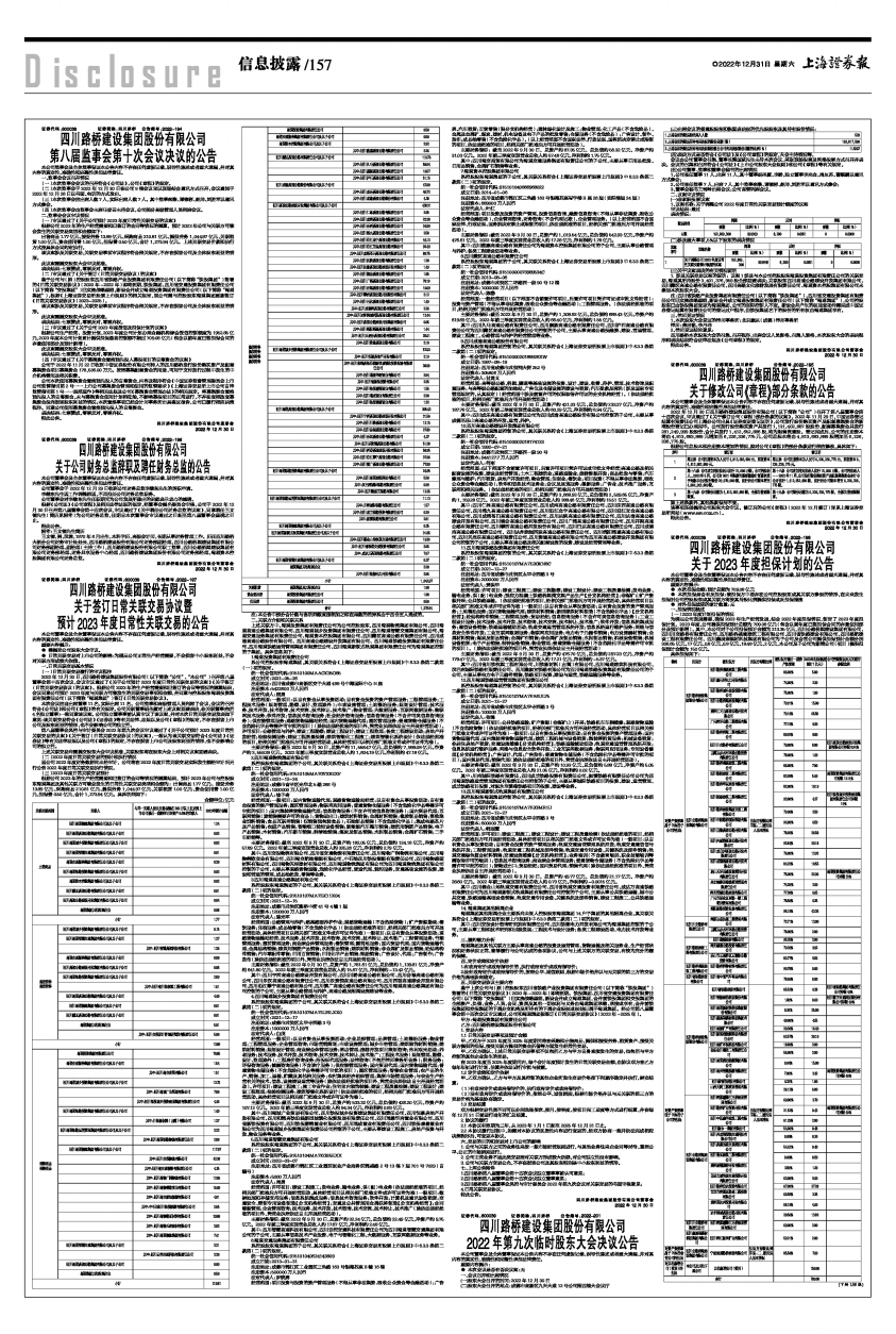 证券代码:600039 证券简称:四川路桥 公告编号:2022-198