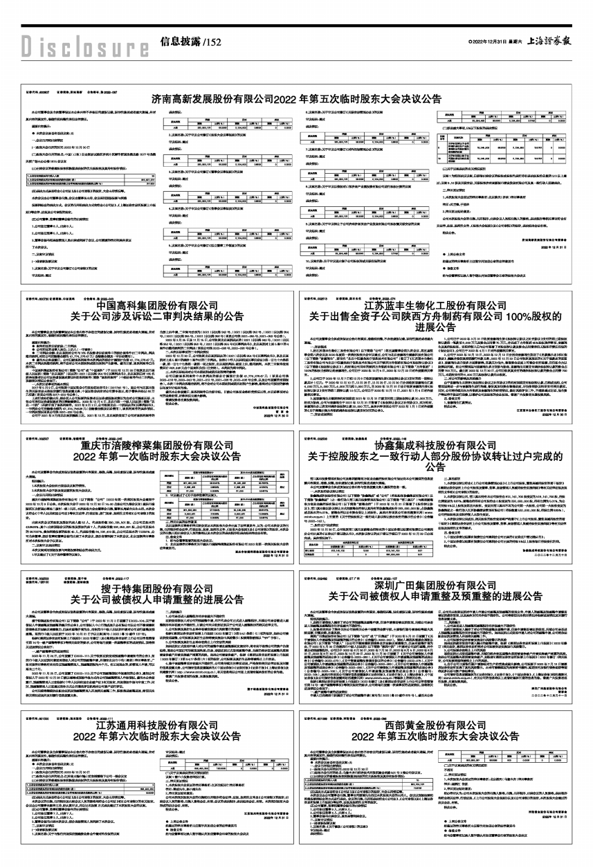 济南高新发展股份有限公司2022年第五次临时股东大会决议公告