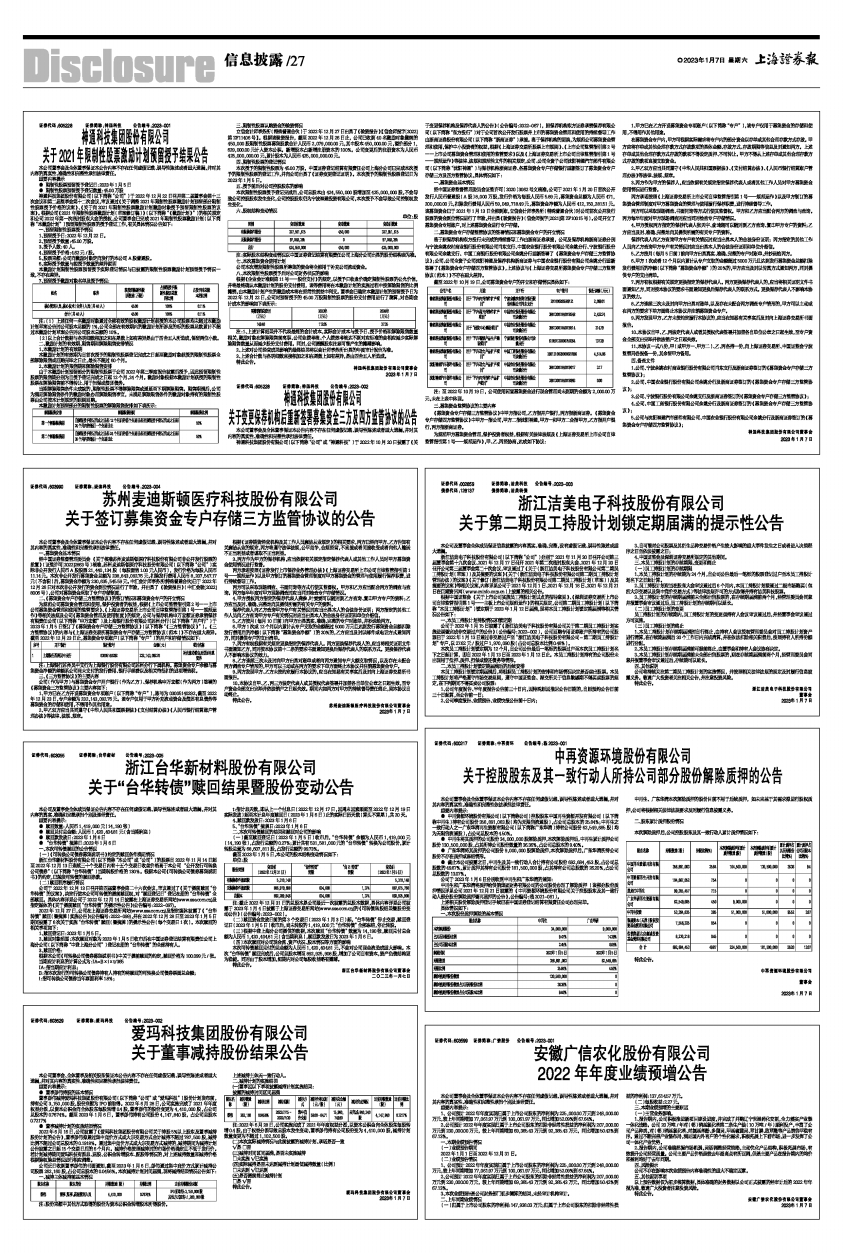 公司近日收到董事彭伟的书面通知,截至2023年1月6日,彭伟通过集中竞价方式累计减持公司股票262,160股,占公司总股本的0.0456%。本次减持计划时间届满,现将减持结果情况公告如下: