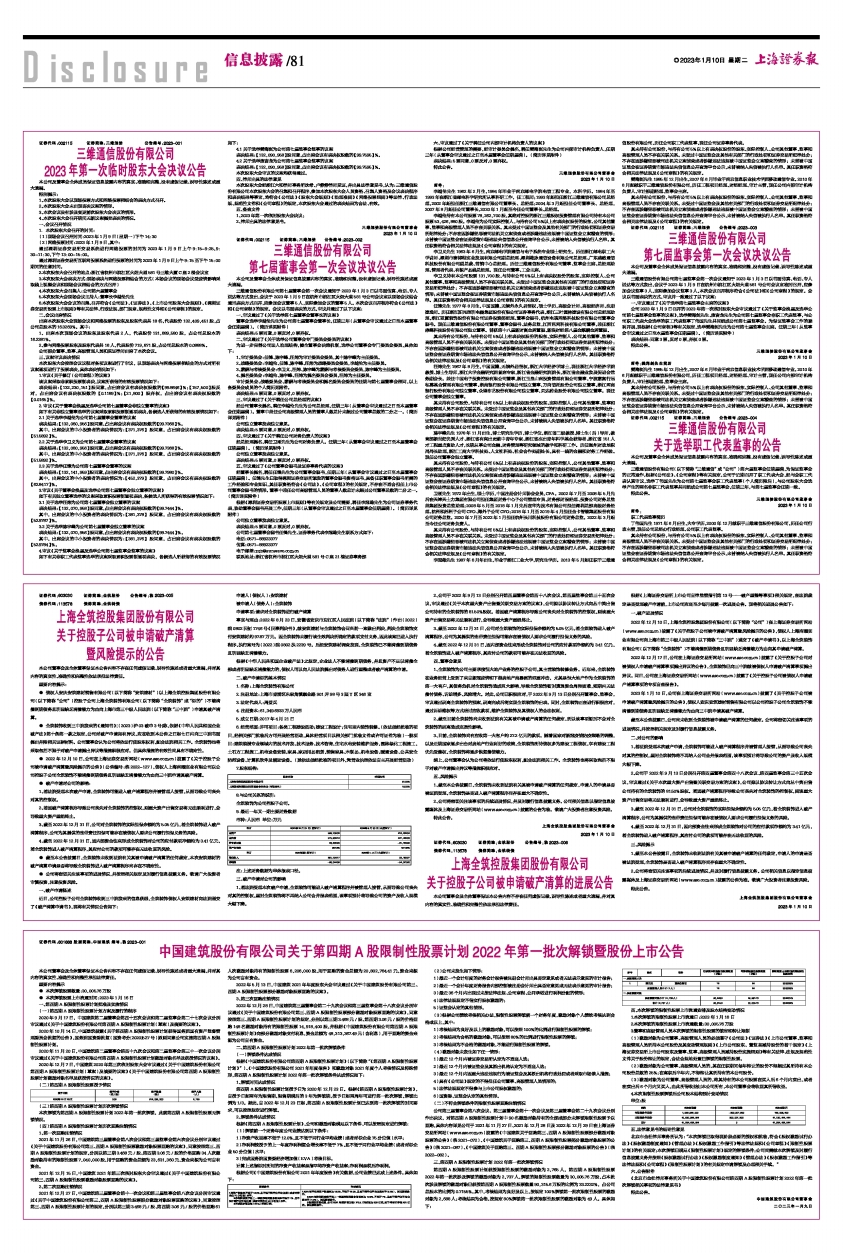 证券代码:601668 股票简称:中国建筑 编号:临2023-001