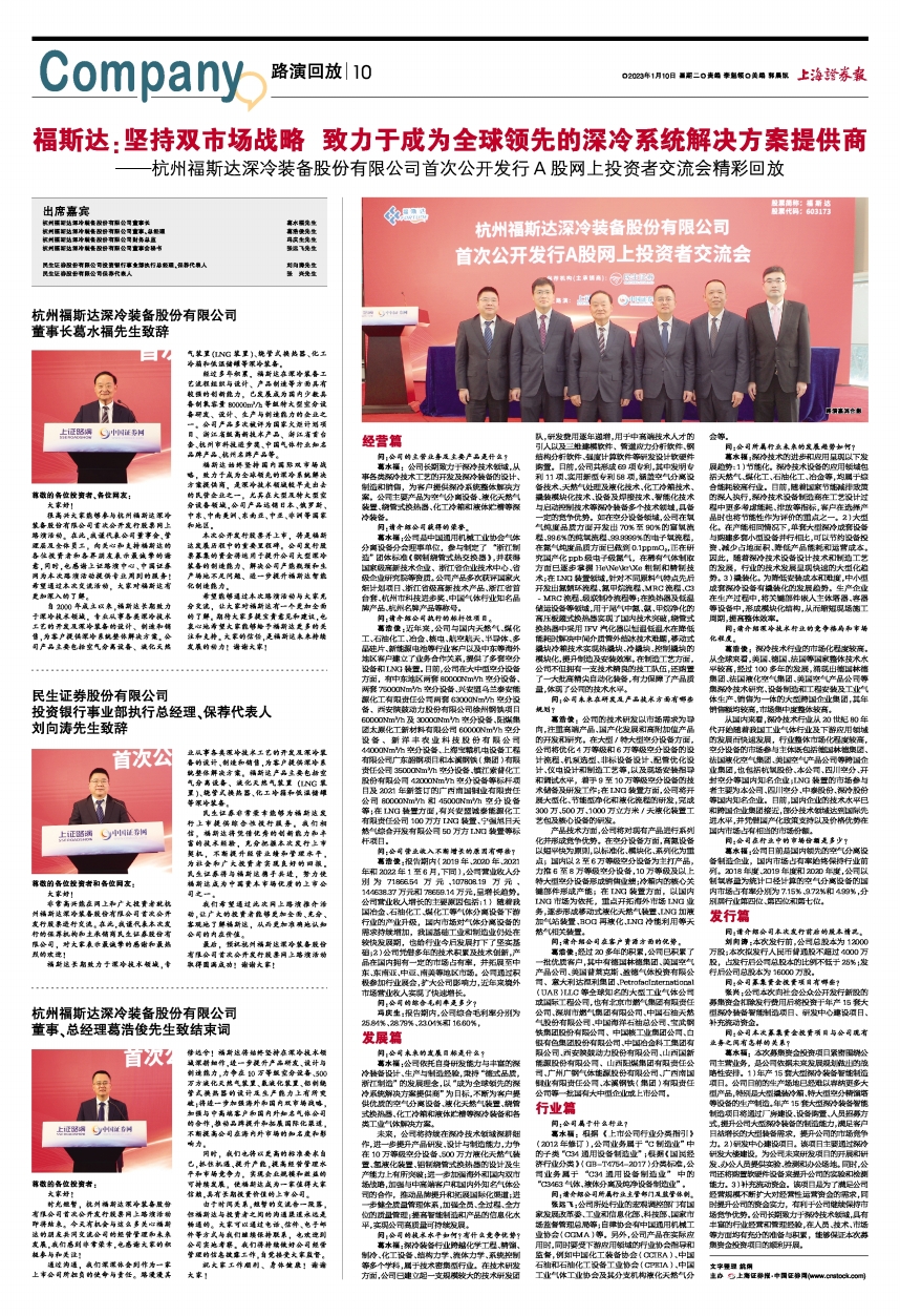 ——杭州福斯达深冷装备股份有限公司首次公开发行A股网上投资者交流会精彩回放