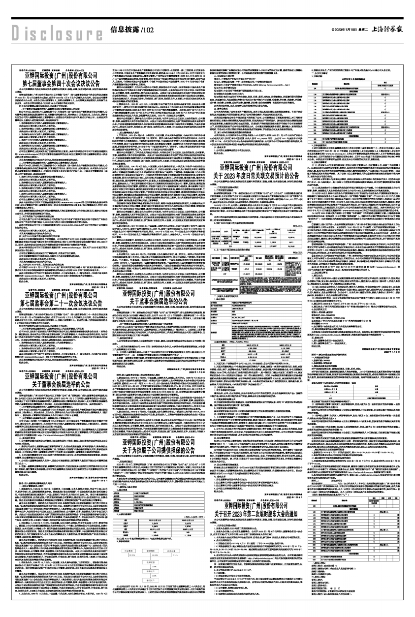 亚钾国际投资(广州)股份有限公司(以下简称“公司”)第七届董事会第四十次会议的会议通知于2023年1月4日以邮件方式发出,会议于2023年1月9日上午以通讯方式召开。会议由公司董事长郭柏春先生主持。本次会议应出席董事9人,实际出席董事9人,公司监事及高级管理人员列席了本次会议。本次会议的召开符合《公司法》《公司章程》的有关规定。