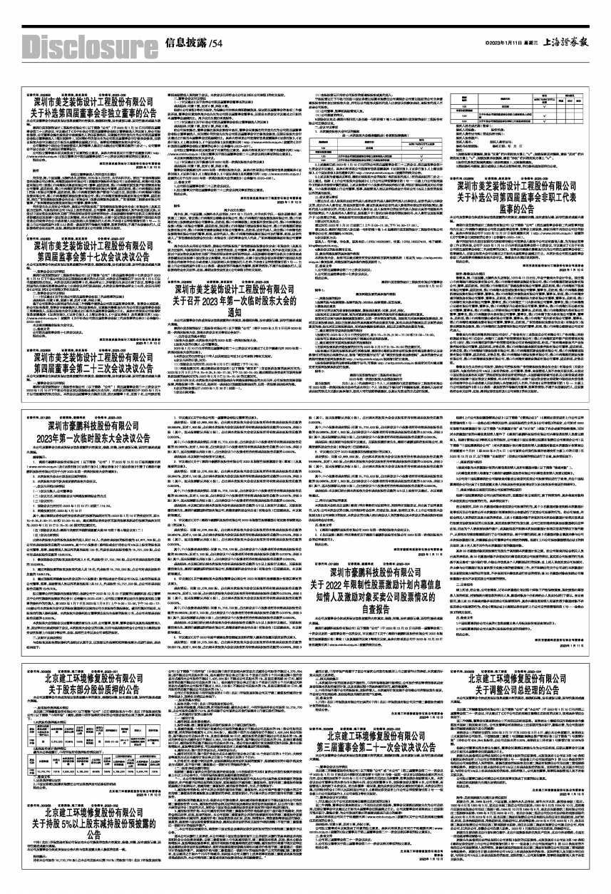 深圳市美芝装饰设计工程股份有限公司(以下简称“公司”)第四届董事会第二十三次会议于2023年1月10日下午在公司会议室以现场结合通讯方式召开,本次会议的通知已于2023年1月5日以书面通知的形式传达。本次会议由副董事长召集并主持,应出席董事7名,实到7名,公司部分监事和高级管理人员列席了会议。本次会议召开符合《公司法》和《公司章程》的有关规定。