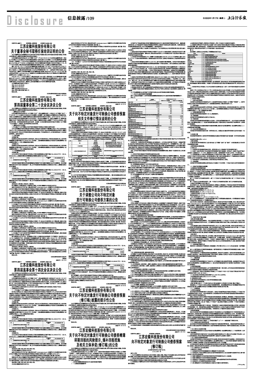 江苏宏微科技股份有限公司(以下简称“公司”)于2023年1月16日召开了第四届董事会第二十次会议、第四届监事会第十四次会议,分别审议通过了《关于调整公司向不特定对象发行可转换公司债券方案的议案》等相关议案,对公司向不特定对象发行可转换公司债券方案进行了调整。《江苏宏微科技股份有限公司向不特定对象发行可转换公司债券预案(修订稿)》及相关文件于2023年1月17日在上海证券交易所网站(www.sse.com.cn)披露,敬请广大投资者查阅。
