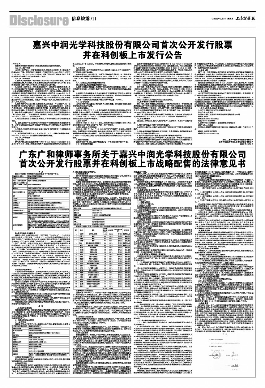 1、发行人:嘉兴中润光学科技股份有限公司