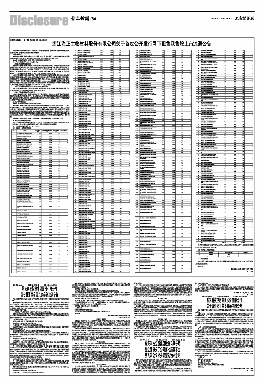●本次上市流通日期为2023年2月16日。
