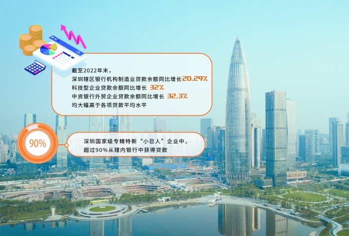 深圳科技产业、先进制造业等现代产业体系金融服务得到了有效提升。截至2022年末,深圳辖区银行机构制造业贷款余额同比增长20.29%,科技型企业贷款余额同比增长32%,中资银行外贸企业贷款余额同比增长32.3%,均大幅高于各项贷款平均水平。
