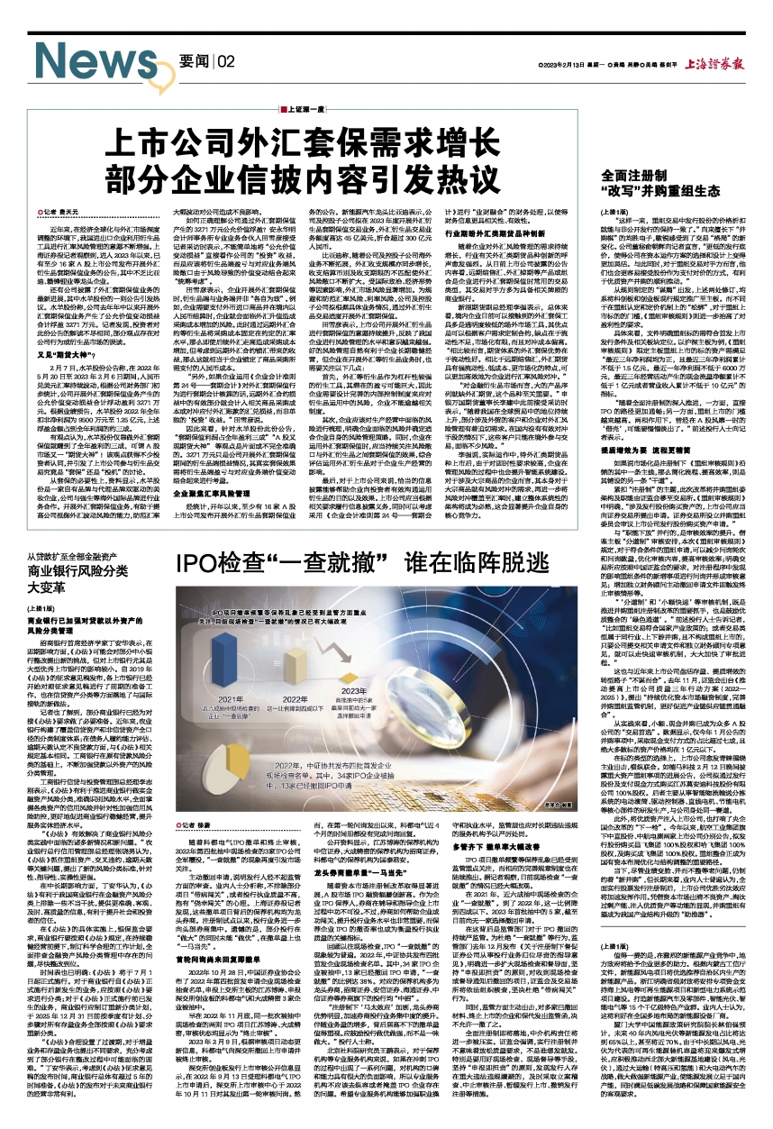 全面注册制即将落地,中介机构责任将进一步被压实。证监会强调,实行注册制并不意味着放松质量要求,不是谁想发就发。特别是要用好现场检查、现场督导等手段,坚持“申报即担责”的原则,发现发行人存在重大违法违规嫌疑的,及时采取立案稽查、中止审核注册、暂缓发行上市、撤销发行注册等措施。