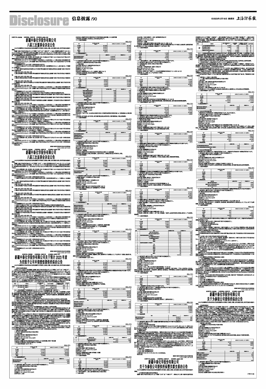 详细内容见2023年2月16日刊登在《中国证券报》、《证券时报》、《上海证券报》和巨潮资讯网http://www.cninfo.com.cn上的《新疆中泰化学股份有限公司关于为参股公司提供担保暨关联交易的公告》。