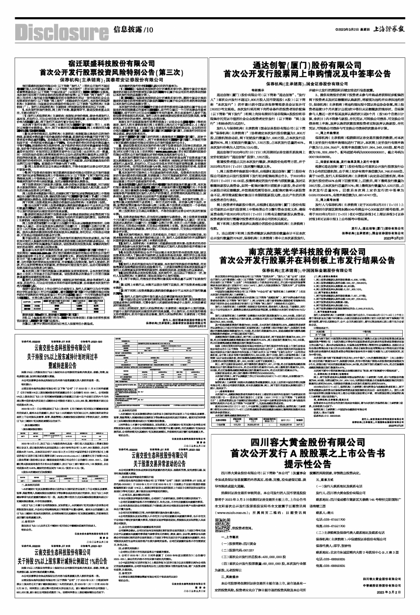 通达创智于2023年3月1日(T日)利用深圳证券交易所系统网上定价初始发行“通达创智”股票1,120万股。
