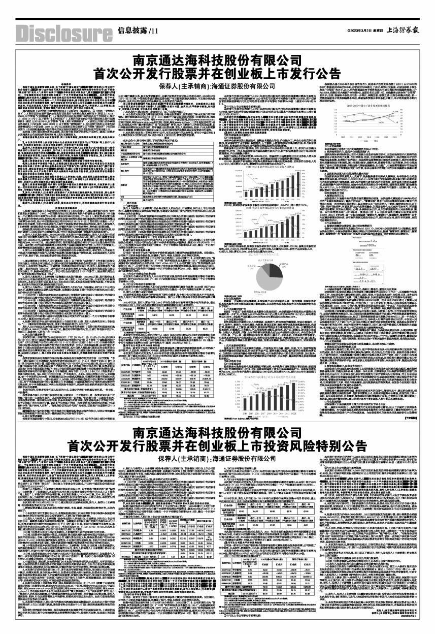 7、发行人和保荐人(主承销商)郑重提示广大投资者注意投资风险,理性投资,请认真阅读2023年3月2日(T-1日)刊登在《中国证券报》《上海证券报》《证券时报》和《证券日报》上的《南京通达海科技股份有限公司首次公开发行股票并在创业板上市投资风险特别公告》,充分了解市场风险,审慎参与本次新股发行。