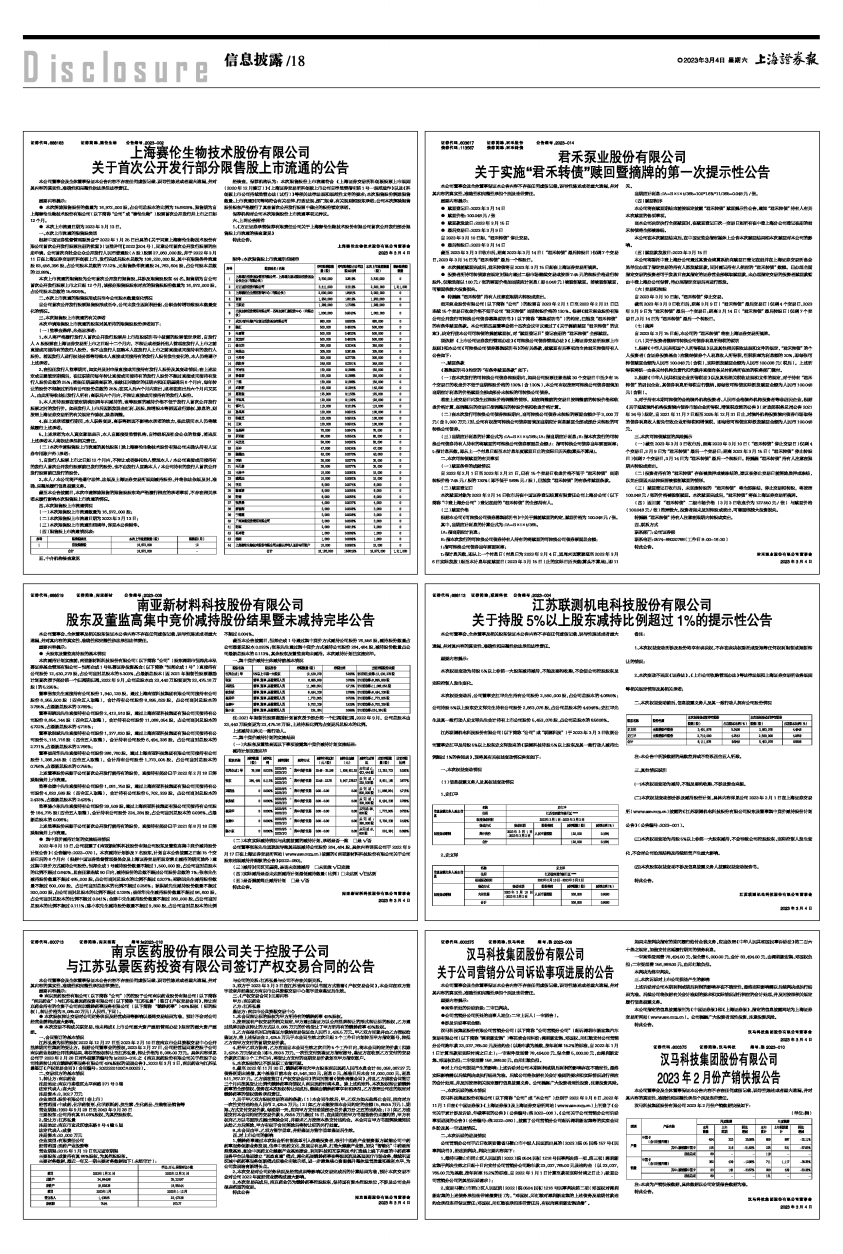 截至2023年3月3日收市后,距离2023年3月14日(“君禾转债”最后转股日)仅剩7个交易日,2023年3月14日为“君禾转债”最后一个转股日。