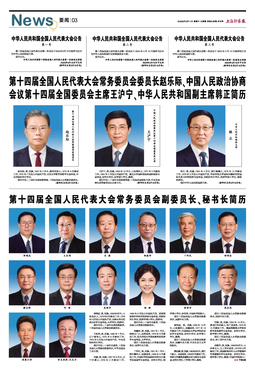 会议第十四届全国委员会主席王沪宁、中华人民共和国副主席韩正简历