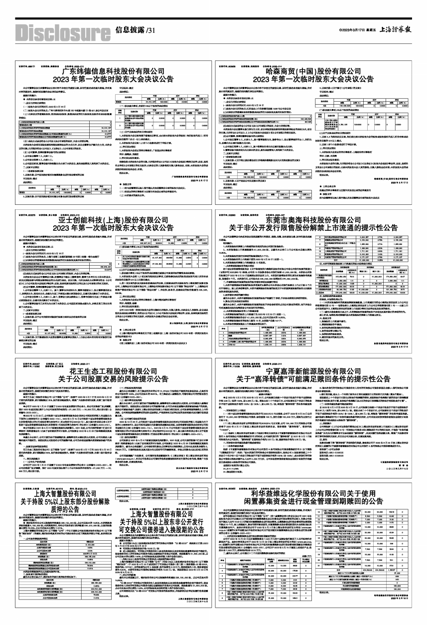 4、本次限售股份的上市流通日期为2023年3月20日(星期一)。
