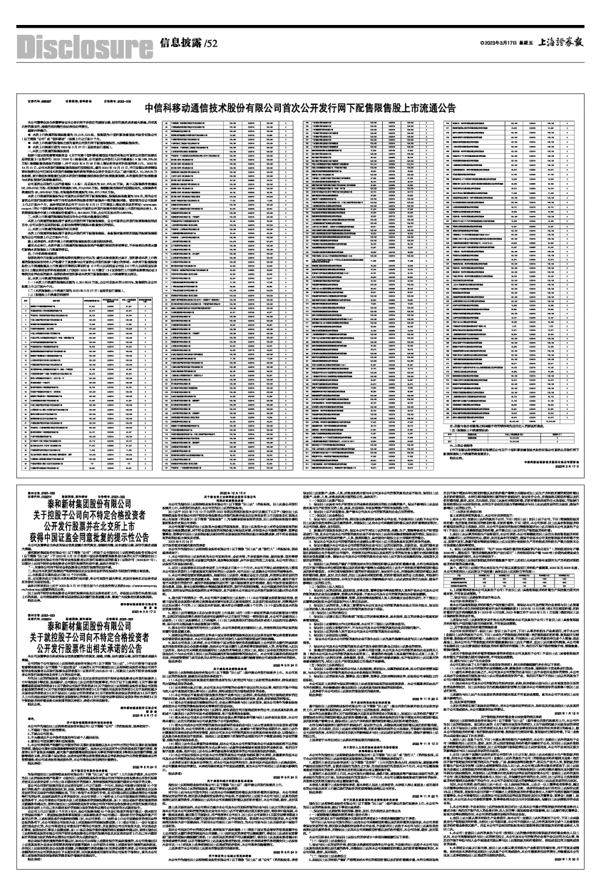 中信科移动通信技术股份有限公司首次公开发行网下配售限售股上市流通公告