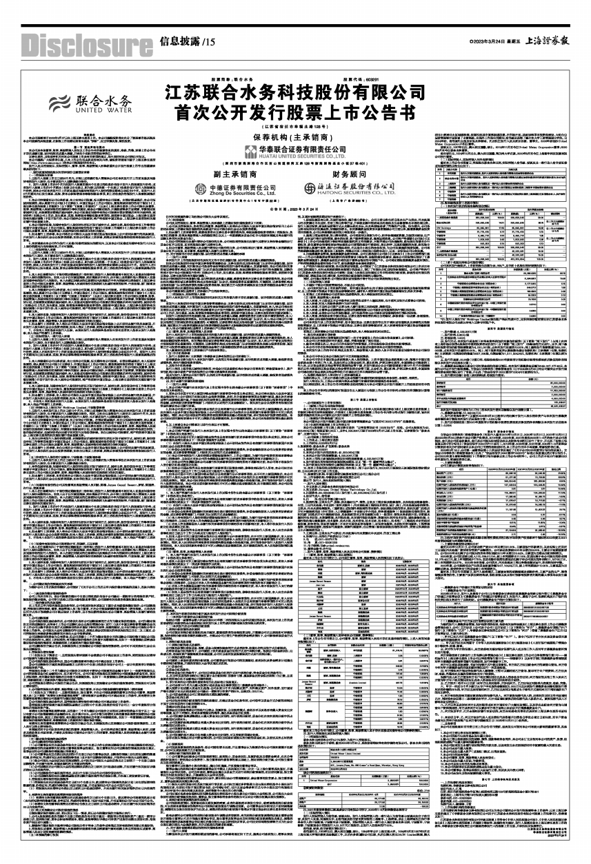 江苏联合水务科技股份有限公司申请其股票上市符合《中华人民共和国公司法》、《中华人民共和国证券法》及《上海证券交易所股票上市规则》等法律、法规的有关规定,发行人股票具备在上海证券交易所上市的条件,华泰联合证券有限责任公司愿意推荐发行人的股票上市交易,并承担相关保荐责任。