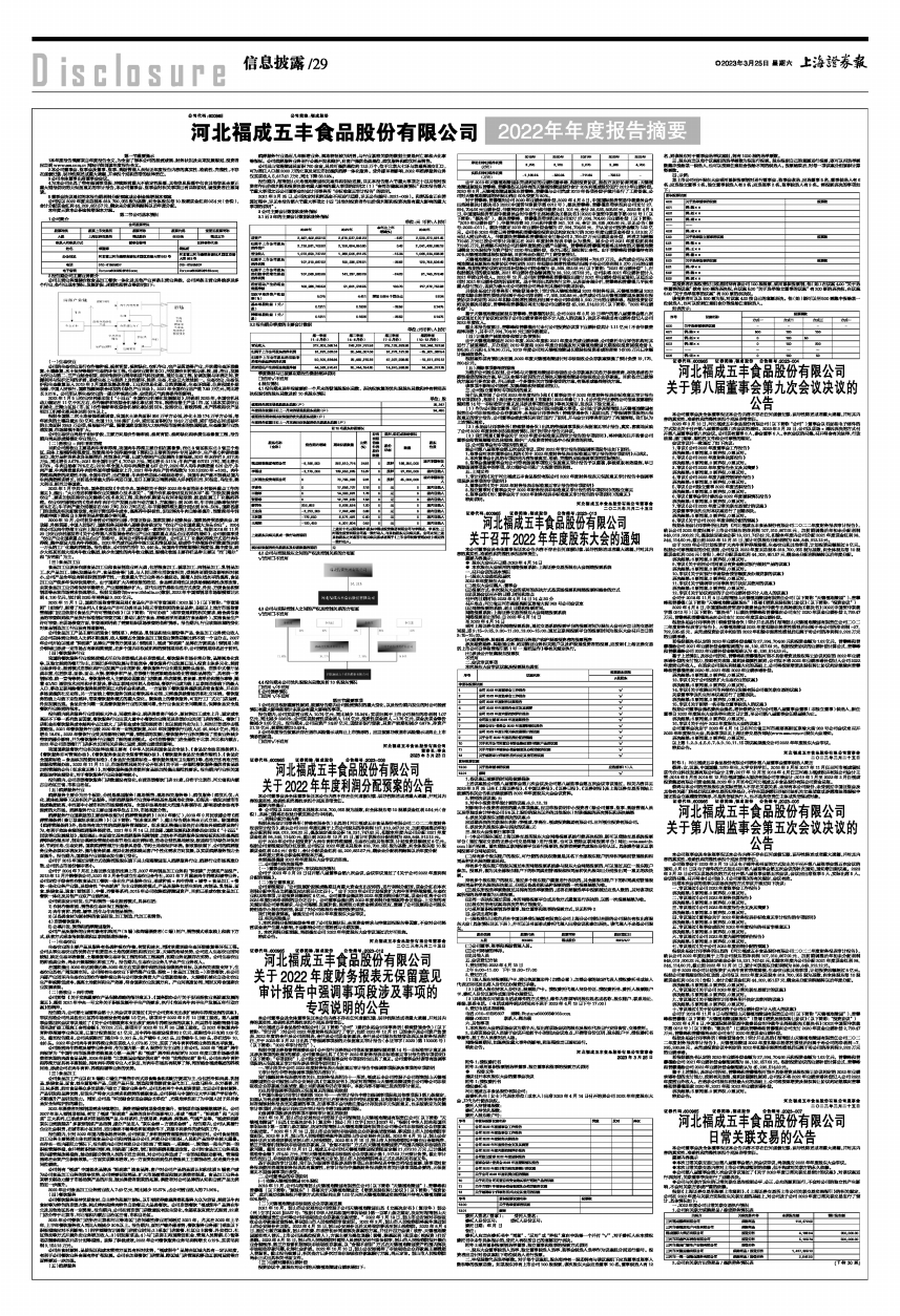 河北福成五丰食品股份有限公司2022年年度报告摘要
