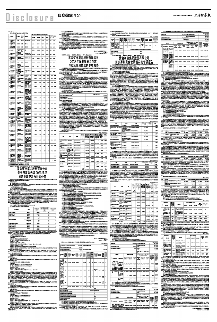 根据《上市公司监管指引第2号一上市公司募集资金管理和使用的监管要求》、《上海证券交易所上市公司自律监管指引第1号一一规范运作》及相关格式指南等有关规定,现将紫金矿业集团股份有限公司(以下简称“公司”)2022年度募集资金存放与实际使用情况专项说明如下:
