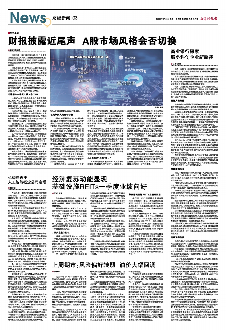 本周机构观点显示,高位板块热点扩散、波动加剧的情况下,临近4月底财报披露收官,A股有望再次迎来“决断”时刻。是TMT相关主线“中场休息”,还是消费等经济复苏主线再度表现,机构之间呈现出较明显的分歧。