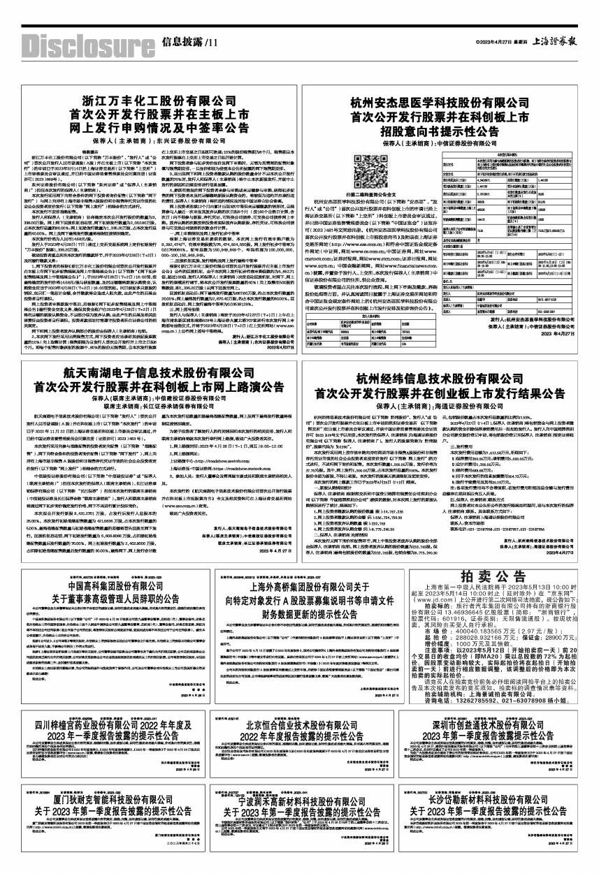 鉴于公司于2023年4月13日披露了《2022年年度报告》,现对公司提交的《上海外高桥集团股份有限公司向特定对象发行A股股票募集说明书(申报稿)》等申请文件进行内容更新。具体内容详见公司于2023年4月27日在上交所网站(www.sse.com.cn)披露的《上海外高桥集团股份有限公司向特定对象发行A股股票募集说明书(申报稿)》(2022年年度财务数据更新版)等相关文件。