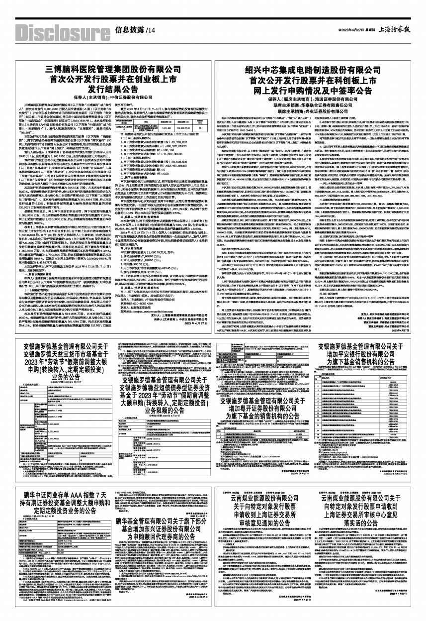 本次发行的网上、网下认购缴款工作已于2023年4月25日(T+2日)结束。具体情况如下: