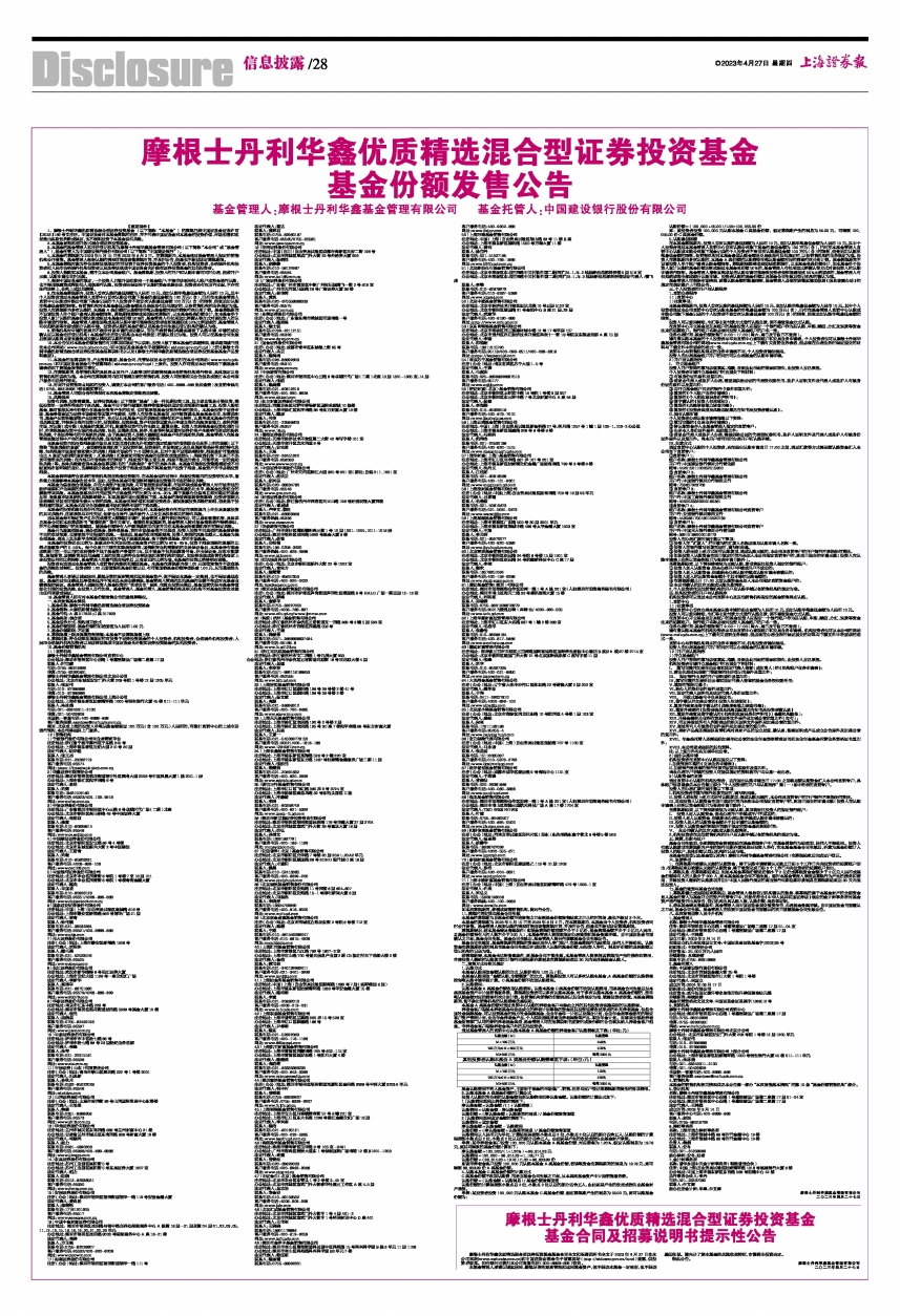 摩根士丹利华鑫优质精选混合型证券投资基金基金合同全文和招募说明书全文于2023年4月27日在本公司网站(www.msfunds.com.cn)和中国证监会基金电子披露网站(http://eid.csrc.gov.cn/fund)披露,供投资者查阅。如有疑问可拨打本公司客服电话(400-8888-668)咨询。