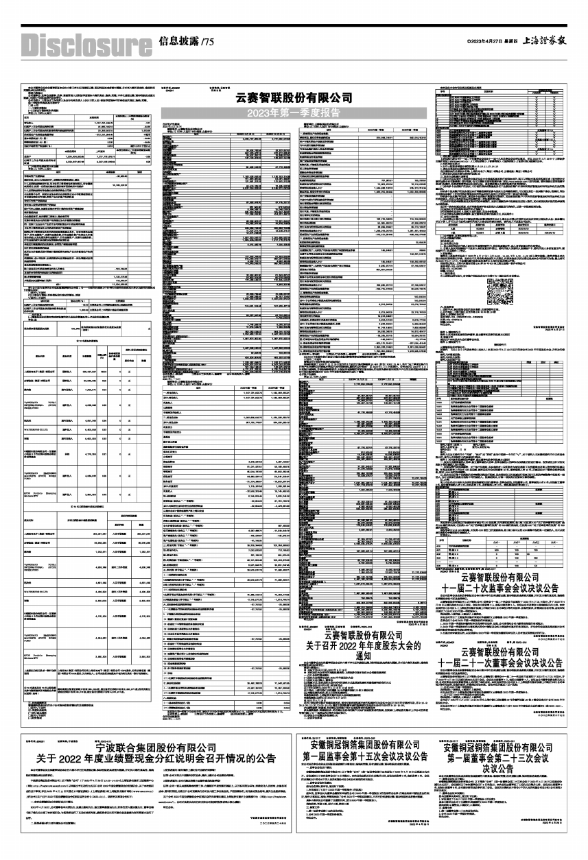 安徽铜冠铜箔集团股份有限公司(以下简称“公司”)第一届董事会第二十三次会议于2023年4月26日以现场结合通讯方式召开。会议通知已于本次董事会召开5日前发出。本次会议由董事长丁士启先生召集并主持,会议应出席董事9名,实际出席董事9名,公司部分高管及监事列席了会议。会议的召集和召开符合《中华人民共和国公司法》和《公司章程》的有关规定。